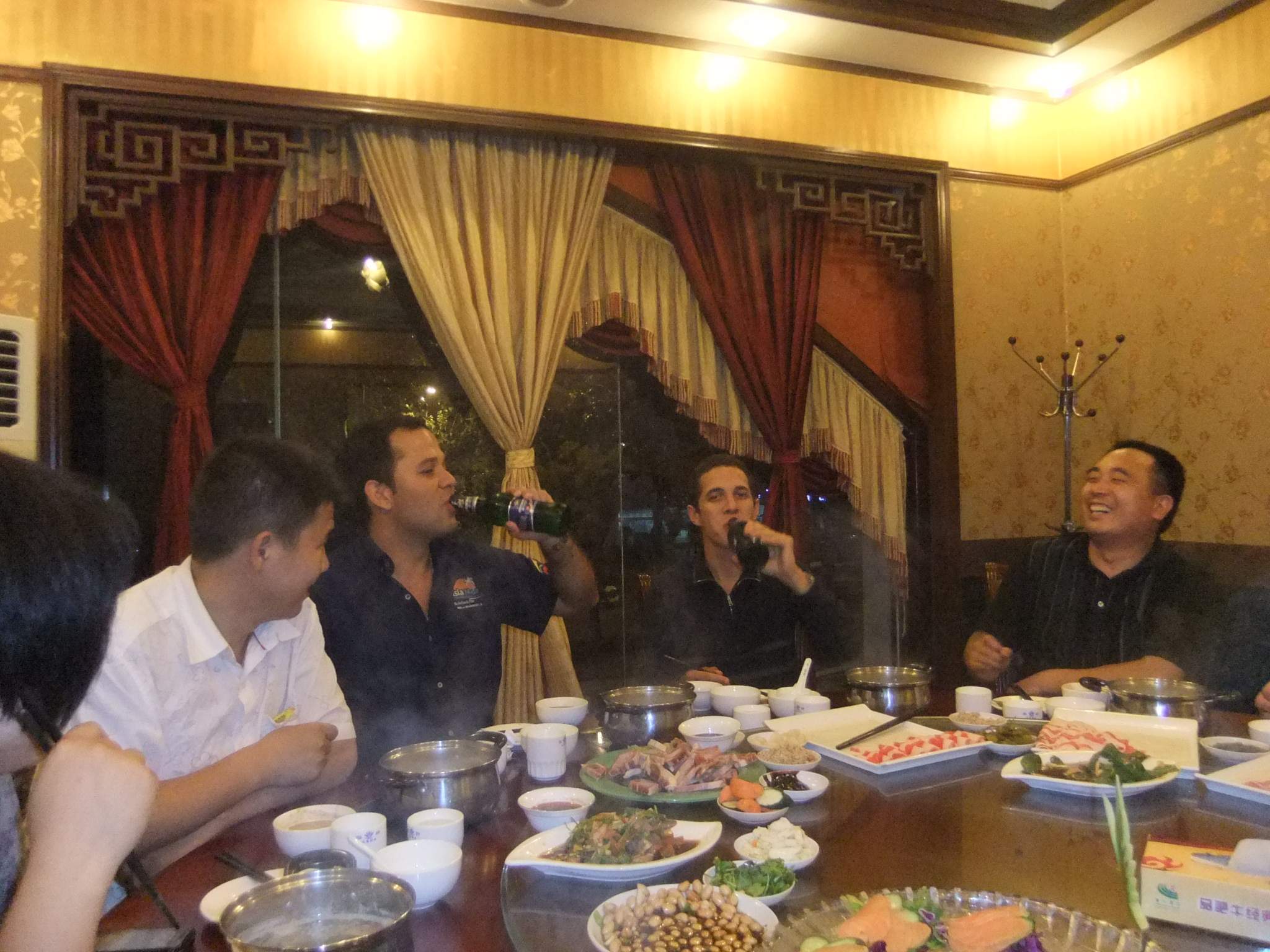 ??? 實(shí)驗(yàn)期間,物料篩分效果良好、篩分質(zhì)量穩(wěn)定,得到了來自大洋彼岸的朋友的稱贊。晚上我們公司的工作人員和委內(nèi)瑞拉的朋友暢飲狂歡,外國朋友學(xué)會(huì)了中國的“干杯”,而我們也知道了“沙路”(下圖,委內(nèi)瑞拉客戶此行我公司很滿意,迫不及待的“沙路”)